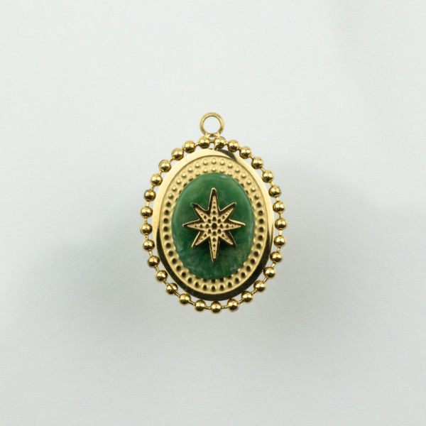 Aperçu Pendentif médaille Agate verte 20x14mm inox doré x2 À partir de € 13,00 M'alerter si disponible