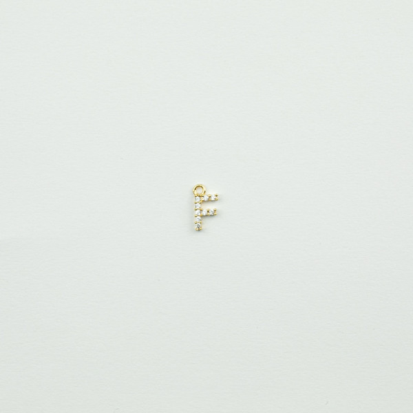 Description Pendentif lettre strass F, 9mm, doré à l'or fin x1